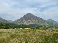 Route: leaving the car at the marked car parking area at the northeast end of Over Water (empty but space for ~8 cars) and walking 2km along the road past Orthwaite to reach a track leading into right to roam land. Climbing to turn sharp left along a quad-bike track and following this to the right at a fork but almost immediately turning further right on a clear path up the ridge. Where the path entered bracken, taking a subsidiary but still clear path higher and to the left skirting the patch of bracken. On gaining a sort of shoulder above Orthwaite Bank, entering bracken but on a distinct path and then climbing above the bracken onto the shoulder of Great Cockup itself. Passing a fine stone grouse butt to reach the summit ridge (slightly higher but with less good views at the far end). Descending into Trusmadoor and turning left, but keeping on the right hand side of the initial valley so as to anticipate the final direction, crossing occasional marshy patches. After 2km, reaching Longlands (the final 100m not as marshy as a previous experience) turning left on the road uphill and then right on a path to cross the dam of Chapelhouse Reservoir and head left and uphill on a road before descending to the car.