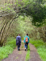 Then across rough grass to turn right/south, first on a clear footpath and then along the cycle path, to a car park and then, after a brief overlap with the outward route, diverting away from the shore on grassy, sandy paths to pass the Belted Galloways and, with a few deliberate zigzags, reaching the car park after the intended notional 6km mark.